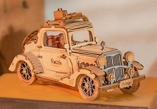 This vintage car has opening doors and hood. It is very detailed and a favorite with buyers.