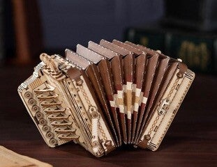 This model accordion measures 6.7" x 3.0" x 3.7"